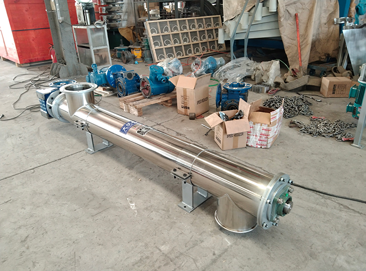 螺旋輸送機一般分為有軸螺旋輸送機、無軸螺旋輸送機兩種。有軸螺旋輸送機由螺桿、U型槽蓋板、進、出料口和驅(qū)動裝置組成,而無軸螺旋輸送機則把螺桿改為無軸螺旋,并在U型槽內(nèi)裝置有可換襯體,結(jié)構(gòu)簡單。物料由進口輸入,經(jīng)螺旋推動后由出口輸出,整個過程可在一個密封的槽中進行,降低了噪聲,減少了異味的排出。由于設(shè)備中沒有高速運轉(zhuǎn)零件,因此螺桿磨損低,設(shè)備能耗低,幾乎不需要維修。