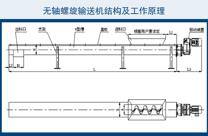 驅(qū)動、殼體、襯板、葉片、 支架、蓋板、進(jìn)料口、出料口,輸送長度、傾斜角度都可以按照客戶要求來定做,不同物料不同輸送角度我們?yōu)槟侠磉x型!