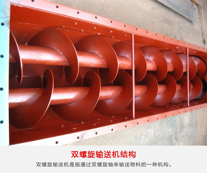 雙螺旋輸送機,其是輸送機中的一種,而且,從某一方面來講的話,其是指通過雙螺旋軸來輸送物料的一種機構。因此,其的工作原理,可以認為是,擋板提升輸送機,通過旋轉的螺旋葉片,來完成物料輸送這項工作的。