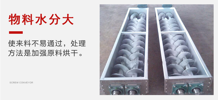 1、物料水分大,集結在螺旋吊軸承上并逐漸加厚,使來料不易通過,處理方法是加強原料烘干。