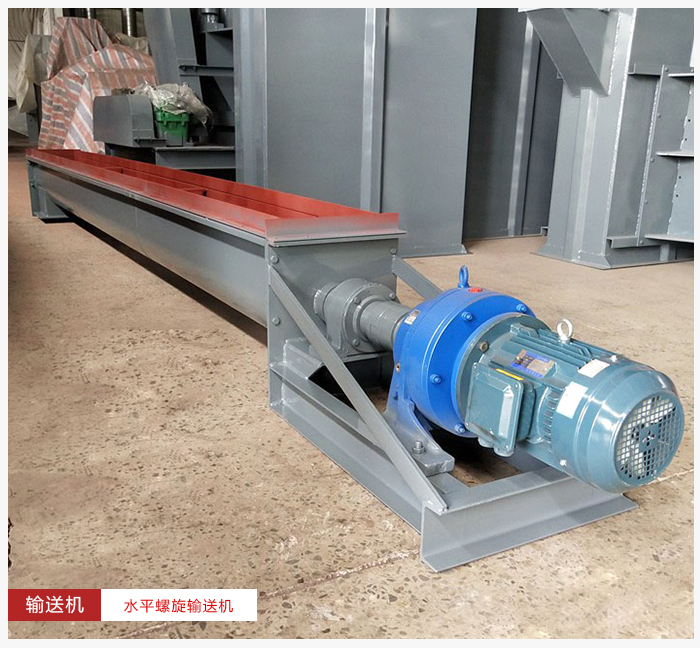 水平螺旋輸送機是將物料均勻地喂送到下道工序中,在驅動裝置中電動機帶動減速機,再由聯軸器傳遞給螺旋軸當物料從進料口進去后,在螺旋葉片的作用下將物料均勻輸出。