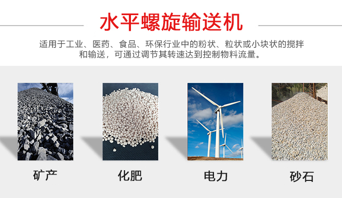水平螺旋輸送機適用于工業、醫藥、食品、行業中的粉狀、粒狀或小塊狀的攪拌和輸送,可通過調節其轉速達到控制物料流量。具有可靠的工作穩定性喂料均勻,使用壽命長等特點。