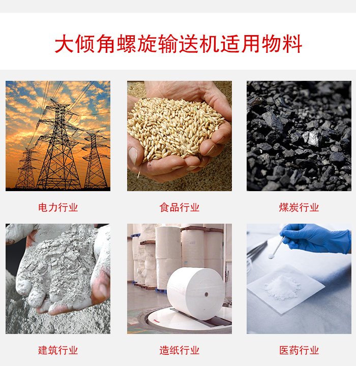 大傾角螺旋輸送機的適用范圍非常廣泛,例如糧食工業、建筑材料工業、化學工業、機械制造業、交通運輸業等。其適用于各種粉狀、粒狀、小塊狀物料,還有可以輸送粘性,帶狀易纏繞的特殊型號。粒物料如谷物、豆類、面粉等食品類,干水泥、粘土、沙子等建筑類,鹽類、堿類、化肥等化學類,還有礦石等其他類別,粘性物料如濕水泥等,易纏繞物料如生活垃圾等??傊髢A角螺旋輸送機被廣泛應用于各行各業,可見其重要性,也印證了它是有價值的。