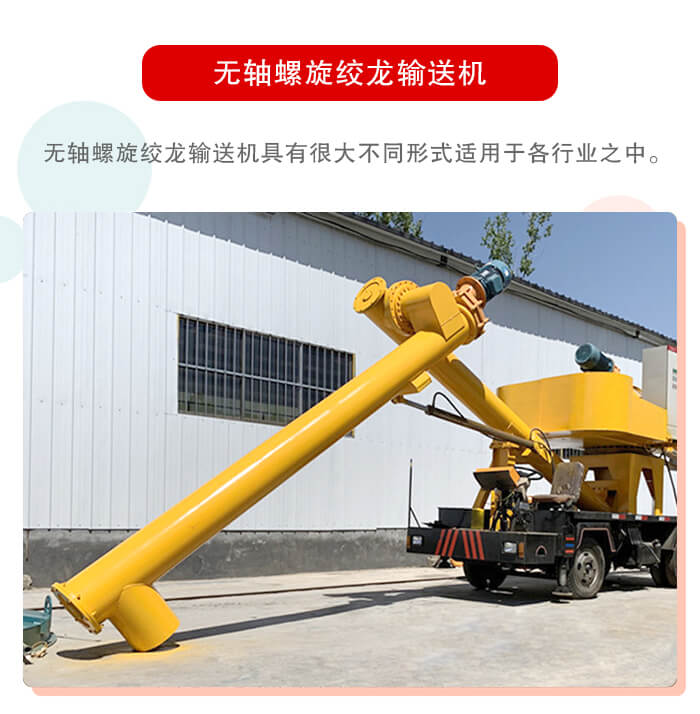 無軸螺旋輸送相對于有軸的螺旋輸送機其少了一個軸承,所以相比之下無軸螺旋絞龍輸送機的結構更加簡單、料槽中無軸承,物料輸送流暢,維修簡便。