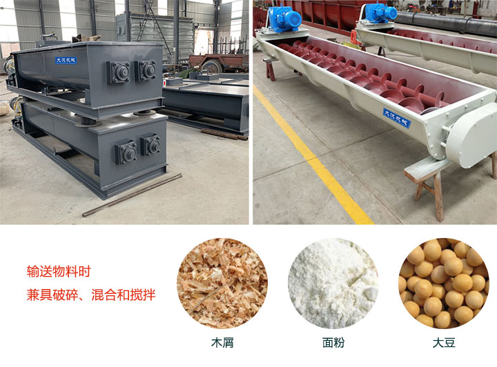 雙螺旋輸送機除了能輸送物料外,還兼具破碎、混合和攪拌等功能;能在輸送物料的同時對物料進行破碎和攪拌;特別適合攪拌且流動性差的物料;如:木屑,面粉,大豆等。