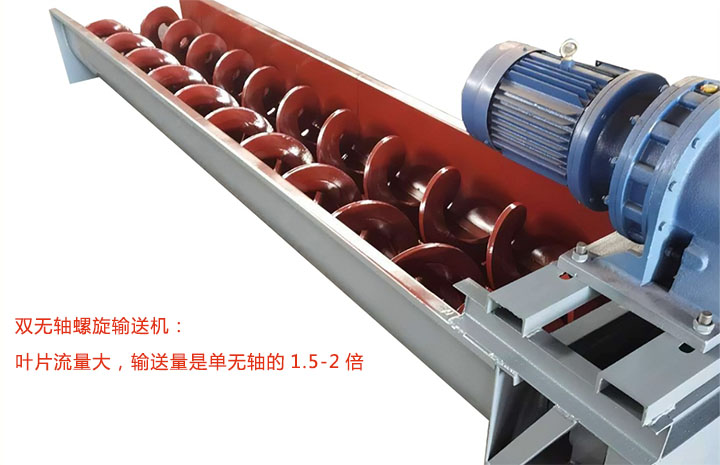 此外,想要輸送產(chǎn)量大選雙無軸螺旋輸送機,雙無軸設(shè)計,葉片流量大,輸送量是單無軸的1.5-2倍;