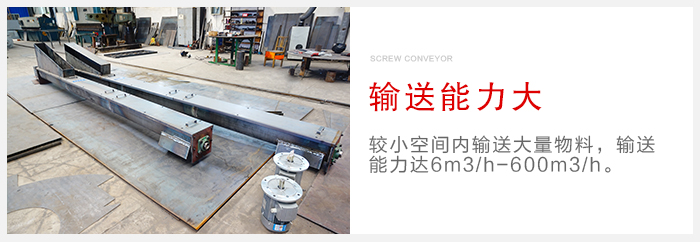 (1)螺旋式輸送機輸送能力大,高效的輸送機允許在較小空間內輸送大量物料,輸送能力達6m3/h--600m3/h。