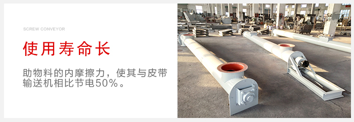 (4)螺旋式輸送機使用壽命長,螺旋式輸送機工藝布置靈活,可高架、地面或地坑布置,可水平或爬坡(≤15°)安裝,也可同機水平加爬坡安裝,可多點進出料。