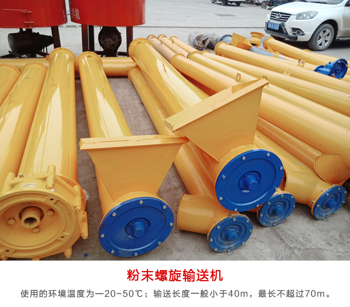 5)粉末螺旋輸送機由螺旋機本體、進出料口及驅動裝置三部分組成?! ?/p>