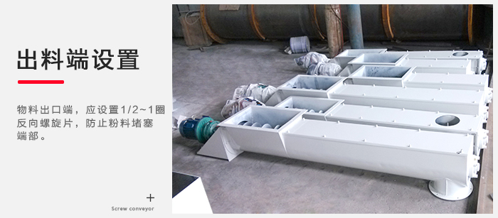 4)LS、GX型螺旋輸送機物料出口端,應設置1/2~1圈反向螺旋片,防止粉料堵塞端部?!?/p>