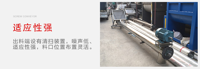 4、槽式螺旋輸送機出料端設有清掃裝置,該槽式螺旋輸送機噪聲低、適應性強,進出料口位置布置靈活。