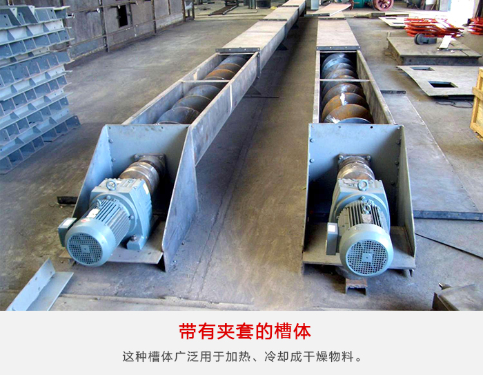 煤粉螺旋輸送機這種形式的槽體由加工好的夾套連續地焊接在普通結構的槽體上,其上焊有換熱介質的進出口管。這種槽體廣泛用于加熱、冷卻成干燥物料。夾套中的隔板使循環水較好地分配面強化熱交換效果。