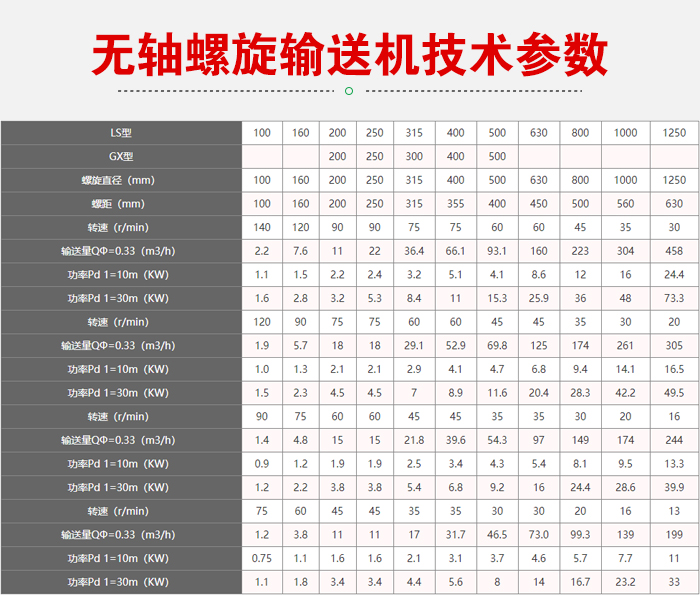 2、相對(duì)于有軸螺旋輸送機(jī),其輸送量是相同直徑有軸螺旋輸送機(jī)的1.5倍;