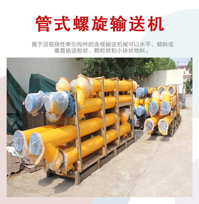 管式輸送機(jī)是一種電機(jī)帶動螺旋回轉(zhuǎn),進(jìn)而推移物料實(shí)現(xiàn)輸送目的的輸送設(shè)備,屬于沒有撓性牽引構(gòu)件的連續(xù)輸送機(jī)械可以水平、傾斜或垂直輸送粉狀、顆粒狀和小塊狀物料。大漢管式輸送機(jī)可分為有軸管式輸送機(jī)和無軸管式輸送機(jī),這兩者的區(qū)別在于無。送機(jī)更易于輸送粘性、纏繞性物料,可以按照用戶物料及應(yīng)用場合要求設(shè)計(jì)為不銹鋼材質(zhì)。能完成輸送、混合、攪拌、松散、加熱以及冷卻等工藝。