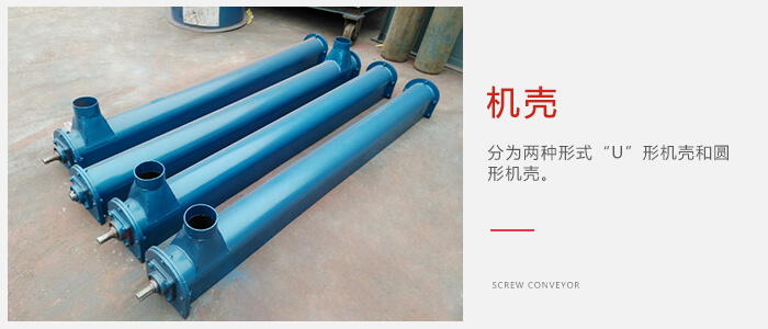 機(jī)殼:分為兩種形式“U”形機(jī)殼和圓形機(jī)殼,圓形機(jī)殼主要是用作密封設(shè)備進(jìn)料,圓形機(jī)殼的絞龍又叫密封絞龍。