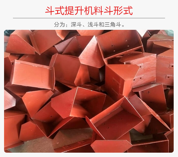 淺斗的斗中與料斗后壁的夾角小,每個料斗的裝載量小,但容易卸空,適于運送潮濕的和粘性的物料。深和淺斗在斗式提升及沿牽引構(gòu)件長度方向間隔一定距離地固定在牽引構(gòu)件上。