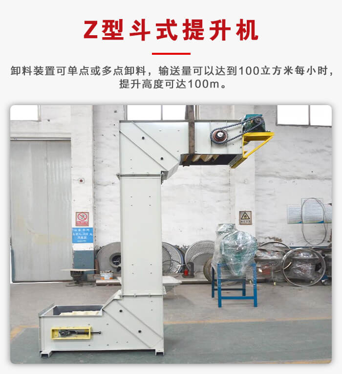 z型斗式提升機外形類似于“z”型,也叫做轉(zhuǎn)斗式提升機,可以單點或多點加料,通過卸料裝置完成單點或多點卸料,輸送量可以達(dá)到100㎡/h,提升高度可達(dá)100m。