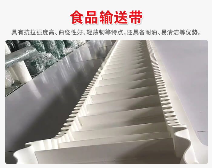 食品輸送帶材質有PVC、聚乙烯、聚炳稀、PP、塑鋼ACETAL、PE、尼龍、PA等,按照具體食品都有相應的專用輸送,除了具有抗拉強度高、曲繞性好、輕薄韌等特點外,還具備耐油、衛生、干凈衛生、易清潔等優勢,是食品行業理想的輸送帶。